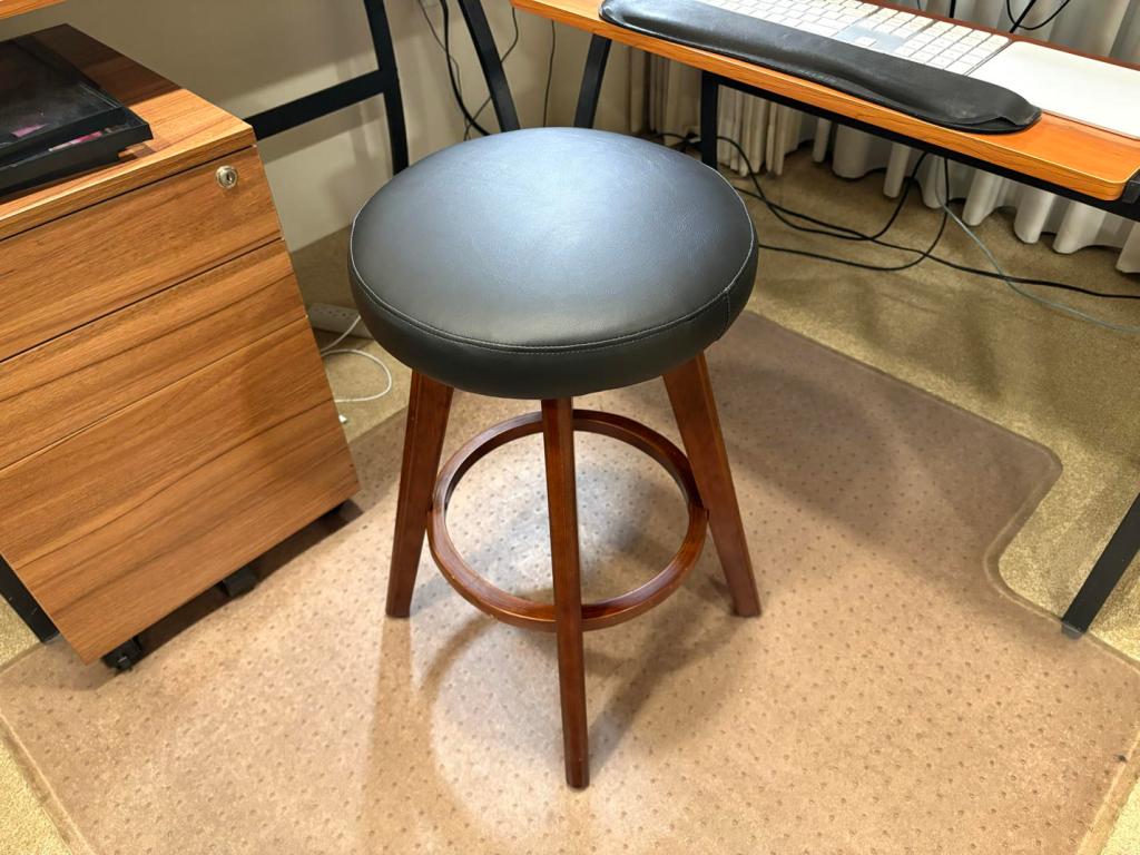 A couple weeks ago I looked at the padded stool I sit on at my desk. I bought it new when I moved here in 2019, and I noticed I had put a bit of wear on it. Actually what got my attention was finding black snowflakes of vinyl on the floor.