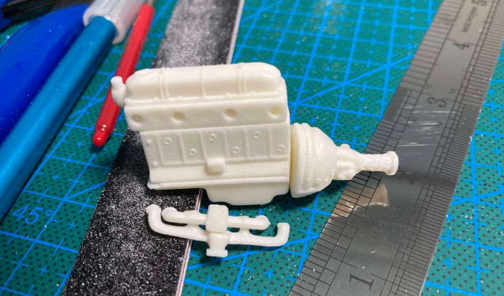 I spent a bit of time trimming and fitting a couple more engine parts.