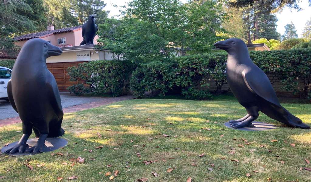Why would you, having a modest Eichler on University Ave, in between much larger houses, decide to put three 8-foot-tall crows on your lawn?