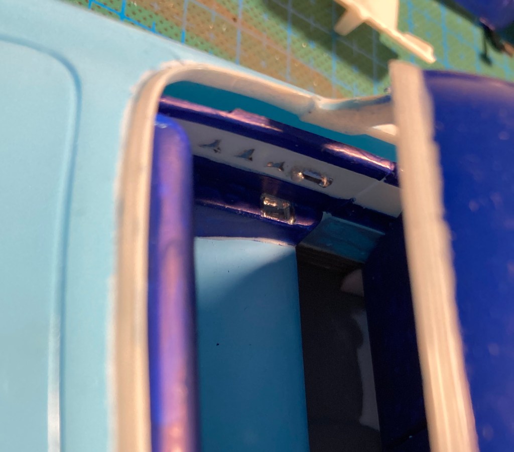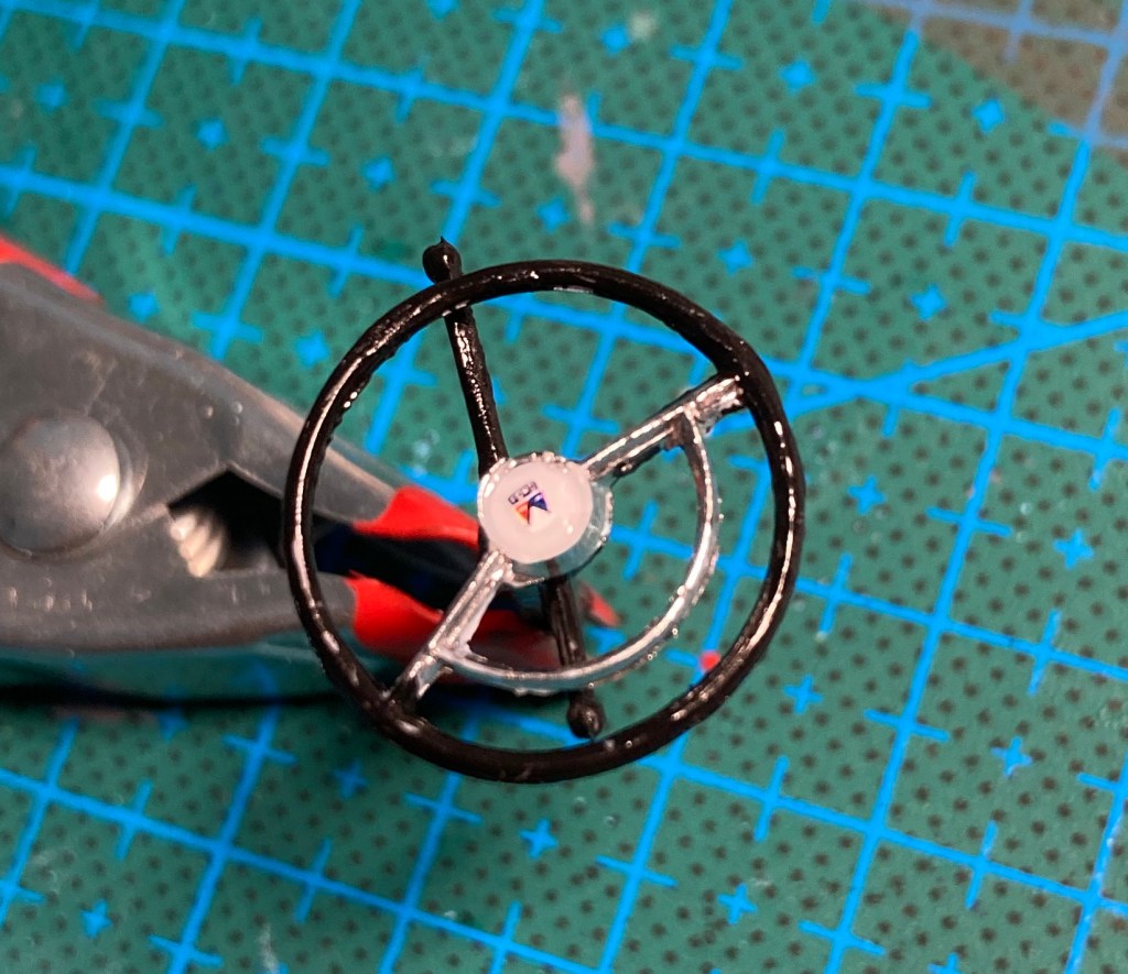 After eating my lunch (which had been sitting outside my door for an hour) I had some free time and did a little work on the model. I detailed the steering wheel and some other parts.