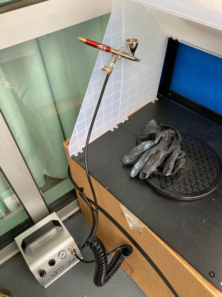 I sat down and used Google Maps and Yelp to find hobby stores. There still are a few, and tomorrow I am going to visit a couple. They all say their employees are masked and yadda yadda. If I see unmasked people or the place looks janky I won’t go in. But I just want to find one place with a good rack of model paints so I can go down the line of bottles and say, right, that one, gimme.