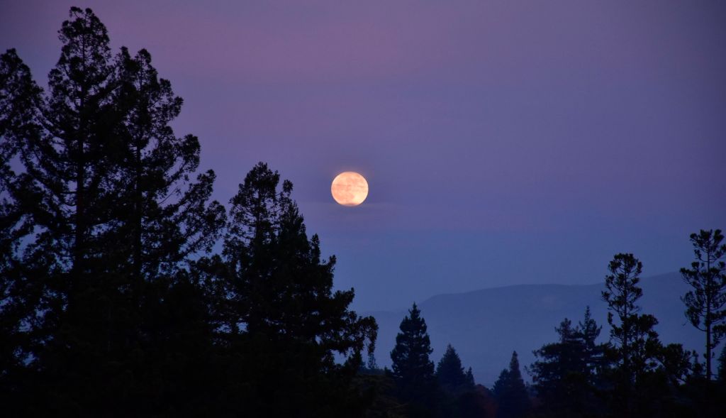 The rest of the day was the usual quiet activities. About 4pm, while talking to Dennis on the phone, I noticed a near-full moon rising and grabbed a picture.