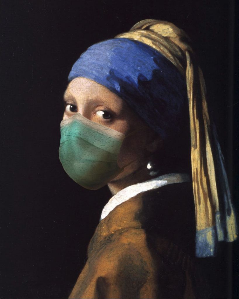 Back home, during the day, I resurrected some how-to-wear-a-mask posters I made a few months back, and also found some new ones. There’s a person on Instagram who does really beautiful renditions of famous paintings with blue surgical masks added. Here’s one,