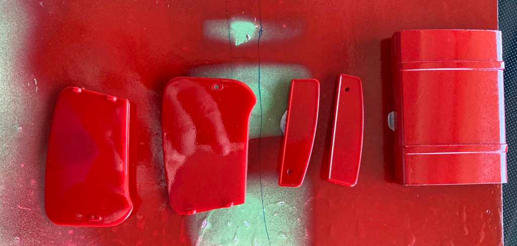 After painting these parts I had to pack up the spray stuff, compressor, booth, gloves, mask, and move it from the bathroom to the porch. I don’t want Wanda being confused by all this stuff in the bathroom when she’s cleaning.