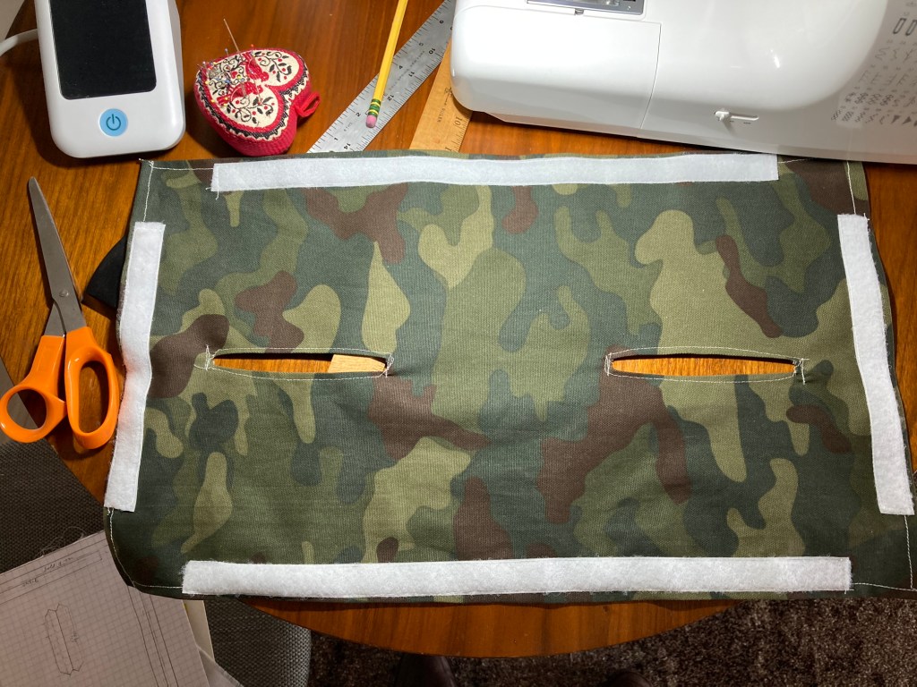 I figured out the dimensions including a hem; cut it out; hemmed the edges; installed velcro loop material; made slits and hemmed them. I had to replace a bobbin and had to thread the sewing machine twice. Got all that done in a couple of hours.