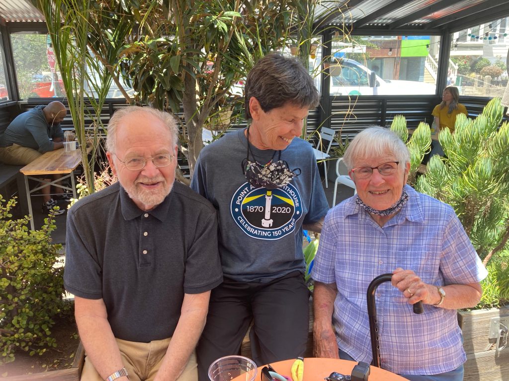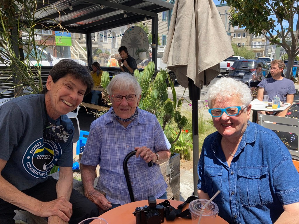 Jean pulled in about 10:20, early as I expected she would be, and we transferred to my car. Drove to the City, to Noe Valley, around 25th and Sanchez. Google Street View can be quite deceptive. I had “walked” around the area last week in street view and never picked up on the fact that the streets are all steeply sloped every which way. It also didn’t warn me that this very intersection where we were to meet for lunch, was being made over by SF street crews. New sidewalks. Still, I managed to find a parking space and we all managed to meet up on time and have a nice lunch.