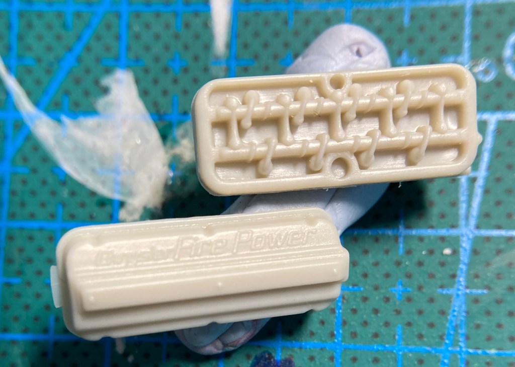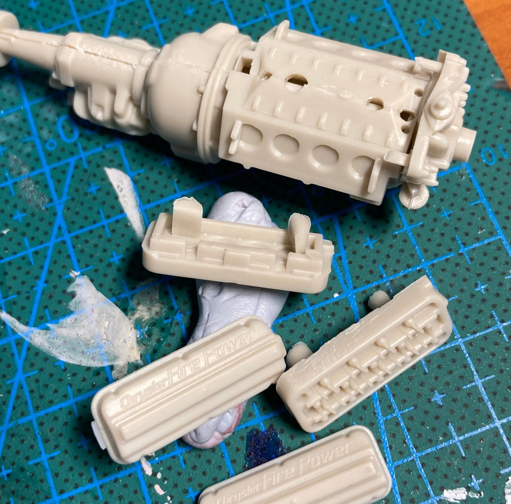 I spent a lot of time working on Software Tools in Python. Coding is such fun. I also spent some time with the Chrysler model. I said it was insanely detailed? Here’s how detailed it is. This picture shows a cylinder head and its matching rocker cover. The cover is going to be glued on to the cylinder head, right?