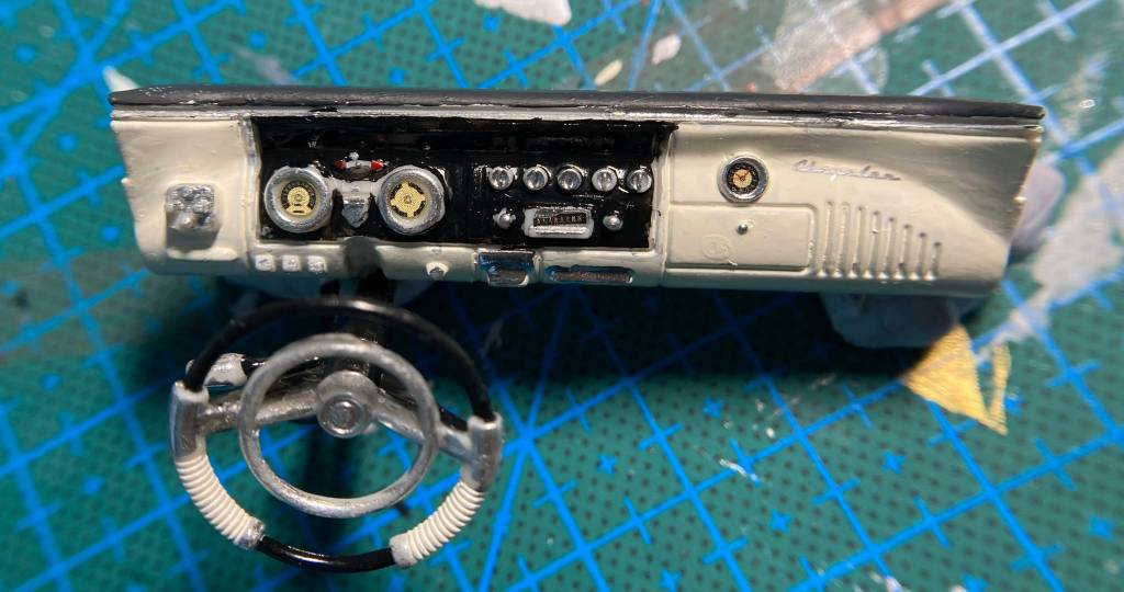 I added a new section to STIP. I worked on the Chrysler. I finished (I thought) detailing the dashboard complete with little decals for the instruments and clock. I took a picture