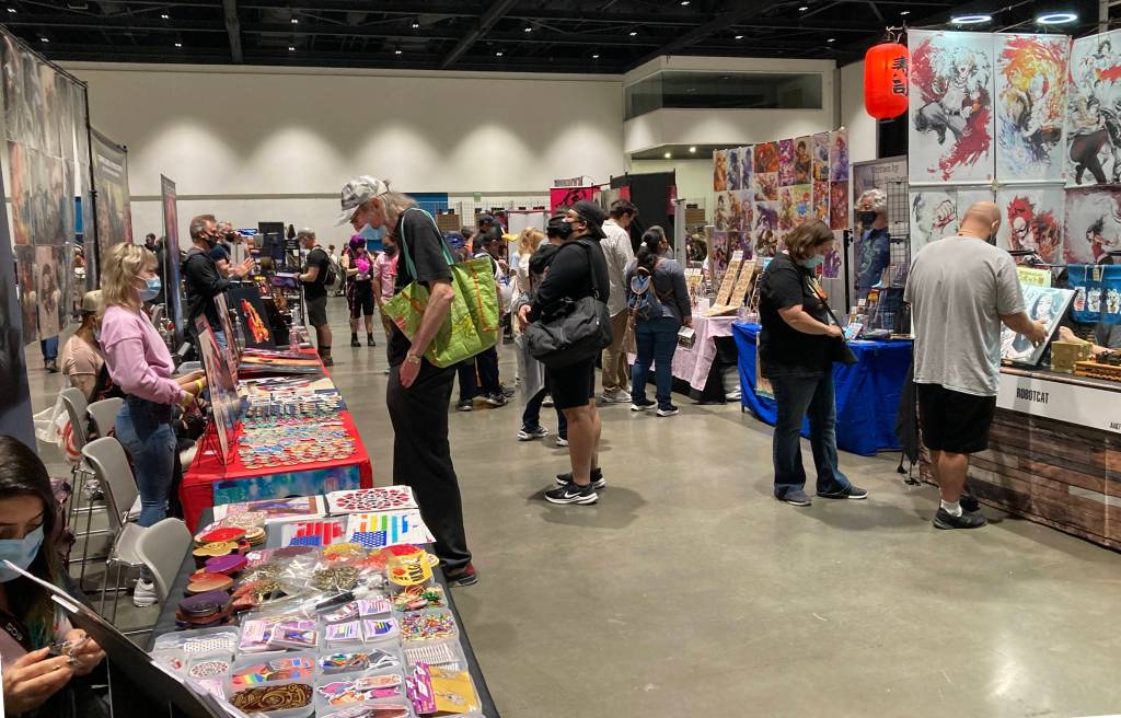 The heart of the con was a large hall filled with vendor booths. I wasn’t inspired to take a lot of pictures, but here’s one to give the flavor.