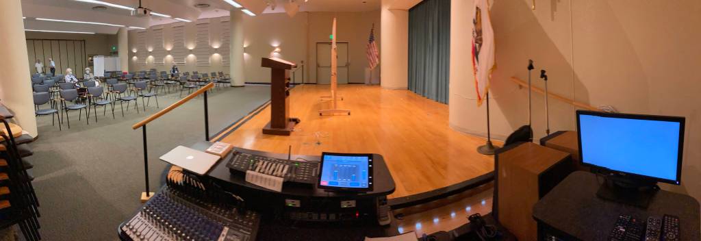 Today is the day for the first event in the auditorium since February 2020. And as chair of the AV committee, I took it on myself to make sure the stage was set up and the audio was working.