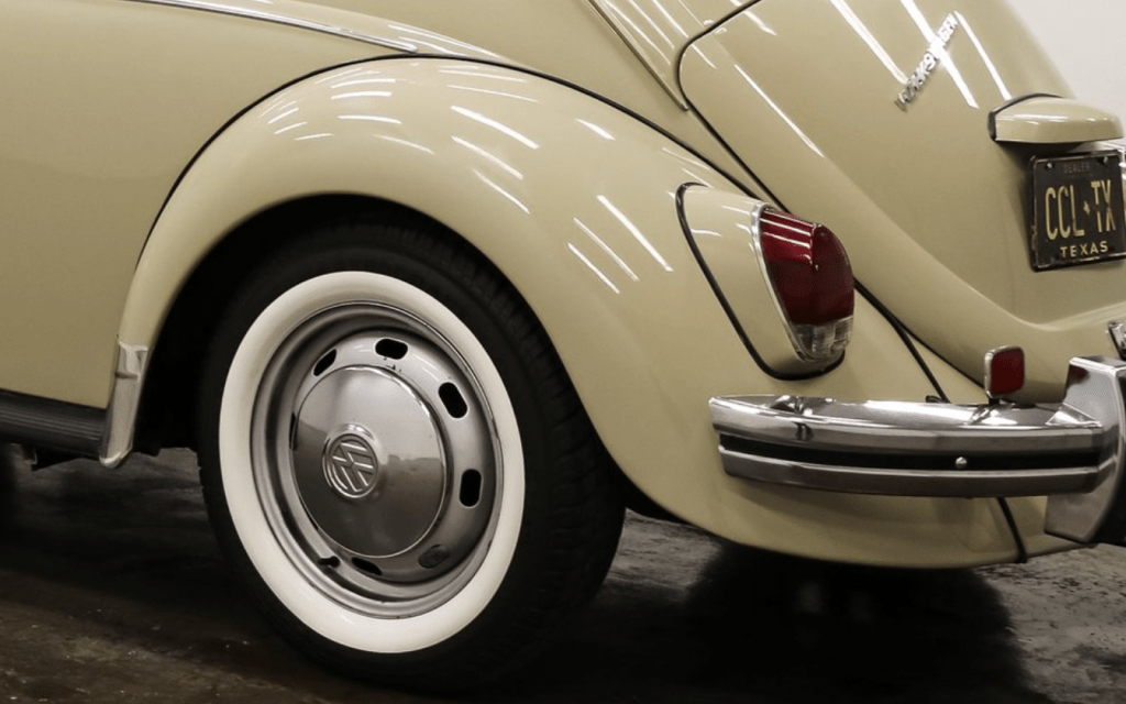 See those black lines around the fender and the tail lamp asembly? Black vinyl gasket stuff. Around the front fenders, too. If you owned, or even rode in, a Bug back in the day you remember those beads of black stuff.