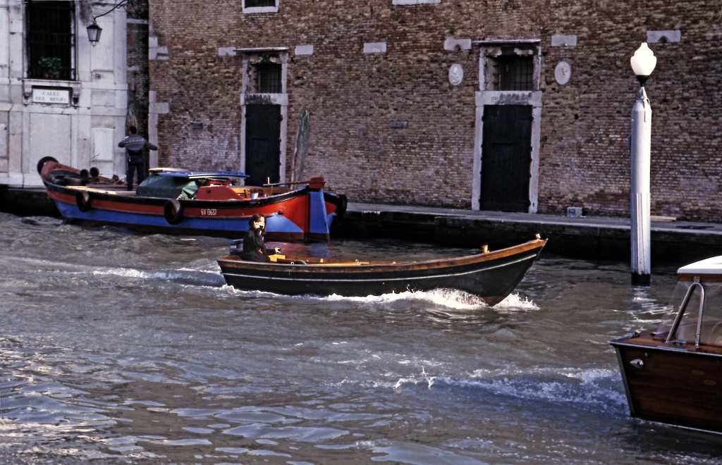 This was taken 20+ years ago. You can’t tell in this reduced version, but at full res you can see she is talking on a flip phone; iPhones were 7 years ahead. It always tickles me, this gal charging down the canal in her motorboat, cutting between the water taxis and gondolas, one hand on the tiller and the other holding the phone. Just another day in Venice.