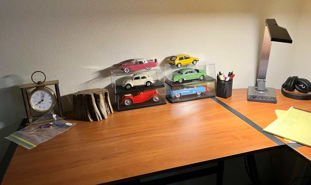 First thing I went for a medium walk and came back through the farmers market. Later I glued the last bit on the t-bird and shot some pictures. My desk is clear again. After weeks of having half the L-shaped surface covered with tools and bottles of paint, it’s all cleared out.