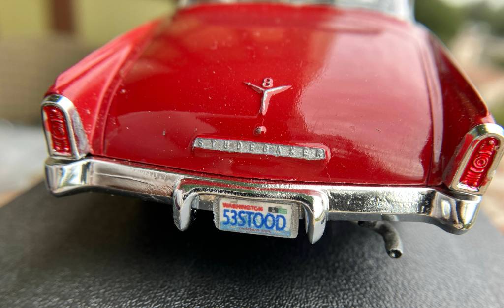 So I went back to my room, and thence to the garage and drove down to FOPAL to tidy my shelves after the first day of the sale weekend. Back to CH by 8:30 and found the power was back on, yay! Showered and dressed again, and took some pictures of the Studebaker (below) after which I cleaned my desk up. I really don’t know when/if I will start another model.