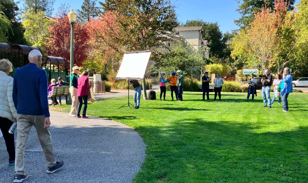 At 1pm a dozen people gathered in the lobby and walked to the nearby park where the same photo team had set up, and they photographed us walking and talking in a natural way, in the park setting.