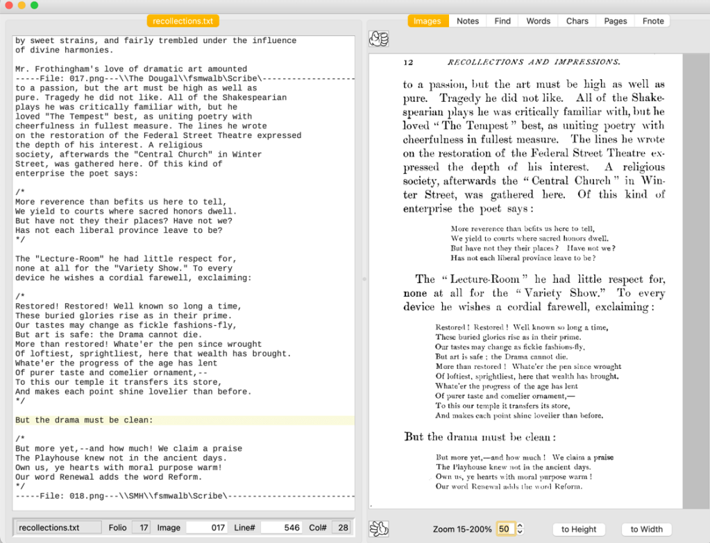 That’s it in the usual mode, displaying the OCR’d text of a book on the left for editing, and the matching page scan image on the right. But there is lots more function under the tabs on the upper right. Almost all of which is tested and working again!