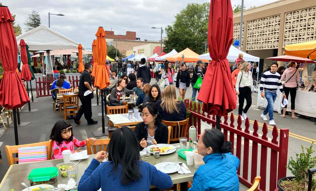 About 10am I decided to go walk the California ave. market. Cal. ave. has opted to keep their on-street restaurant seating from Covid times; then the large and popular Sunday farmers market folds itself between and around these, so there is a really intense four-block scene. It was just fun walking along in it. I treated myself to a packet of medjool dates, which I hadn’t indulged in for quite a while.