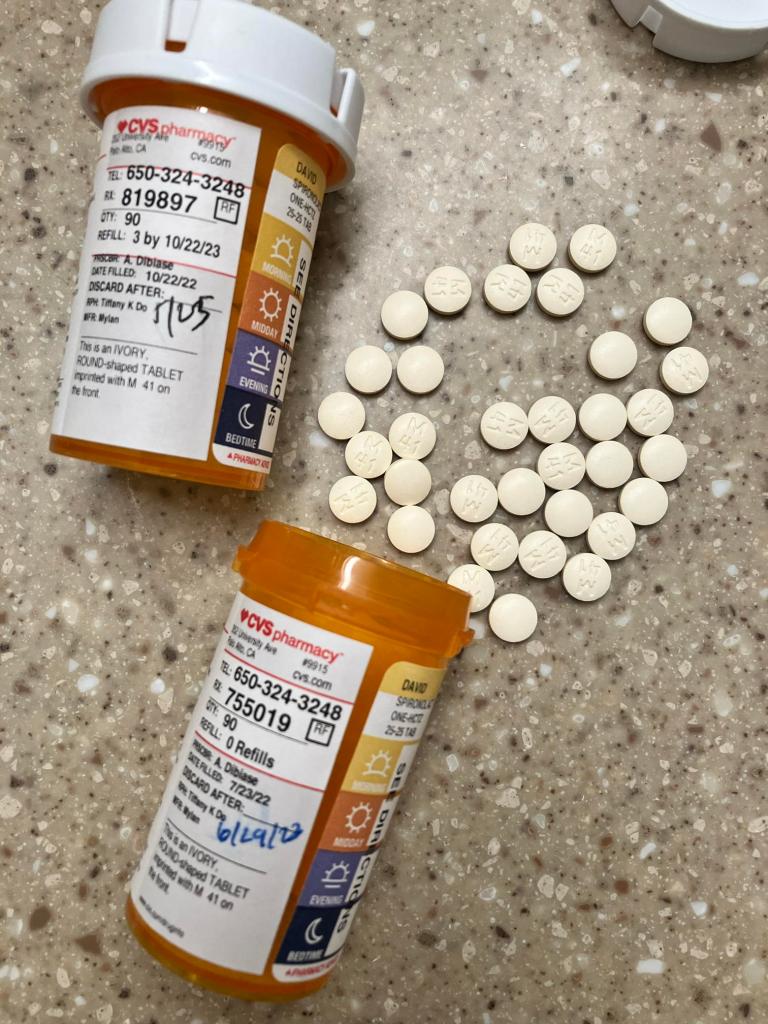 The prescription is for 90 tablets, a 90-day supply. CVS auto-refill occurs while there are still 34 pills in the previous bottle. OK, the prior bottle was filled on 7/23/22 (middle of the white label). Plus 90 days brings us about to 10/23, which would be now. But how come I have 34 tablets remaining? I have not skipped that many doses (not skipped any, as a matter of fact). So presumably I had 30-odd tablets already in hand on 7/23. At some point they got ahead by a month, but I don’t know when. (Paranoid much?)