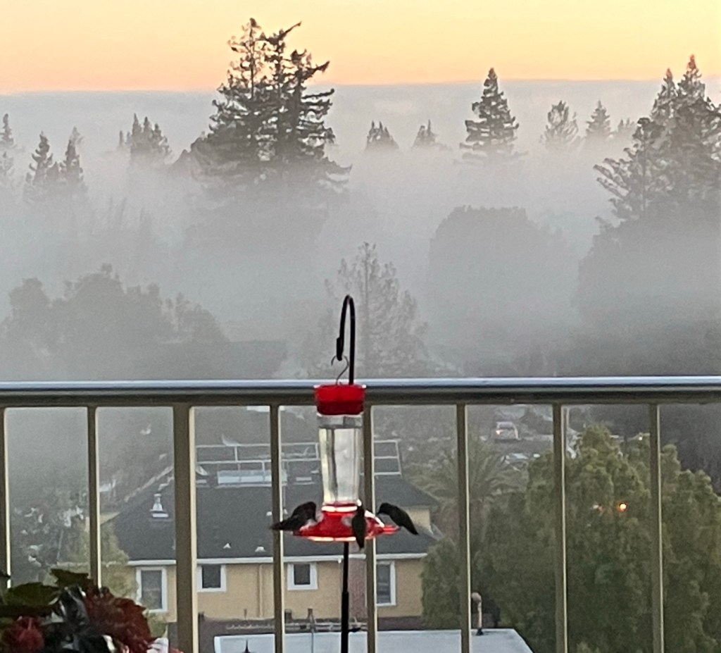 I was sipping coffee and reading the paper at 6:30 when I glanced out and saw we had an unusual foggy morning.