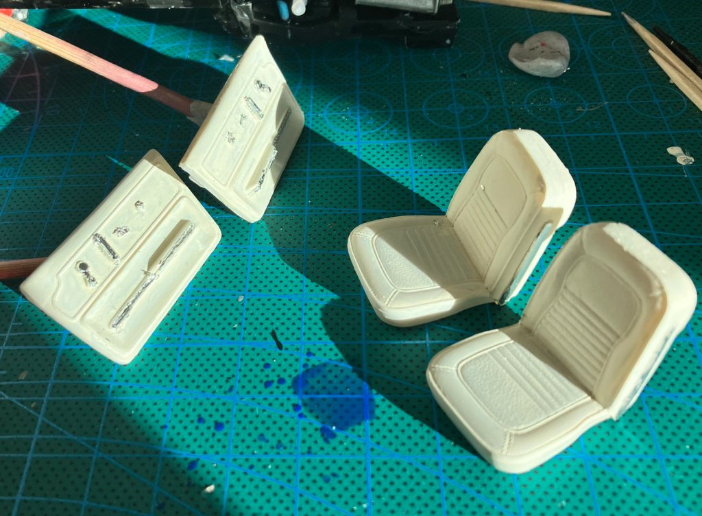 OK, moving on. Yesterday I did some work on the stingray, putting metal foil on some interior bits. This morning I was tidying the apartment and I noticed the morning sun was shining on my bits of model, so I took a picture..