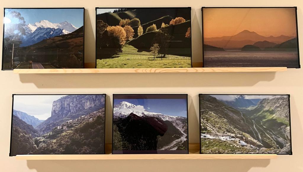 Then I printed a bunch of new pictures for my hall picture rails The old display which was big blossoms of one kind or another, had been up for 2 months or more.