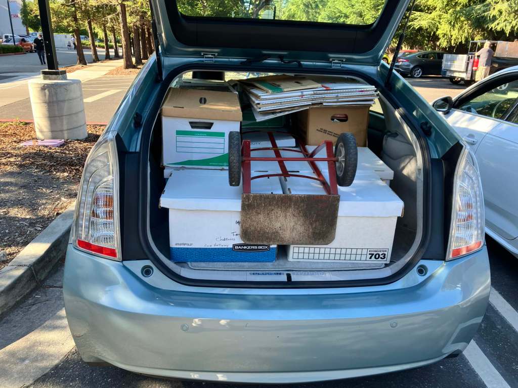 And spend 9am to 5pm standing around selling books. Boring and tiring. Then pack all the remaining books into boxes and schlep them down to the car. Took two cars to bring the books to the sale, but only one car to take the remainder home.