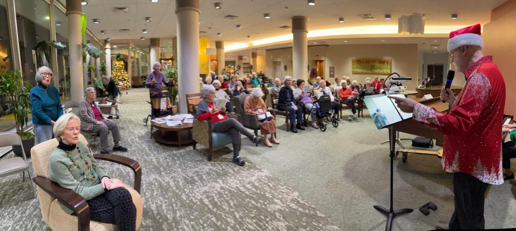 The 10am performance, mostly attended by people from the AL and nursing side, went well. Then I spent from 11:30 to about 6 just lying around napping and reading. Still running a degree-plus of temp. Didn’t feel like eating.